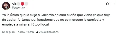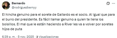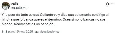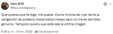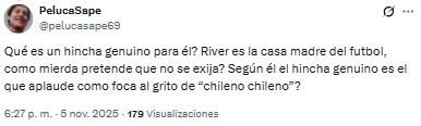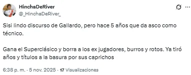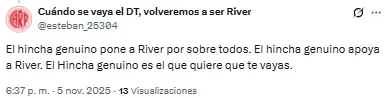 “El hincha genuino es el que quiere que te vayas”, disparó uno de los hinchas del Millonario en redes sociales. Otro, en cambio, expresó: “¿Si no lo bancás no sos hincha? Realmente es un papelón”.