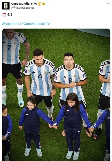Al hacer referencia sobre el “4/8” de la fecha, FIFA acompañó con una imagen de Gonzalo Montiel y Marcos Acuña con aquellos dorsales durante un compromiso con el equipo dirigido por Lionel Scaloni.