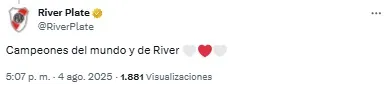 La publicación generó una ola de reacciones de hinchas de River, pero también hubo un comentario de la cuenta oficial del Millonario. “Campeones del mundo y de River”, resumió el usuario del club de Núñez sobre sus actuales jugadores.