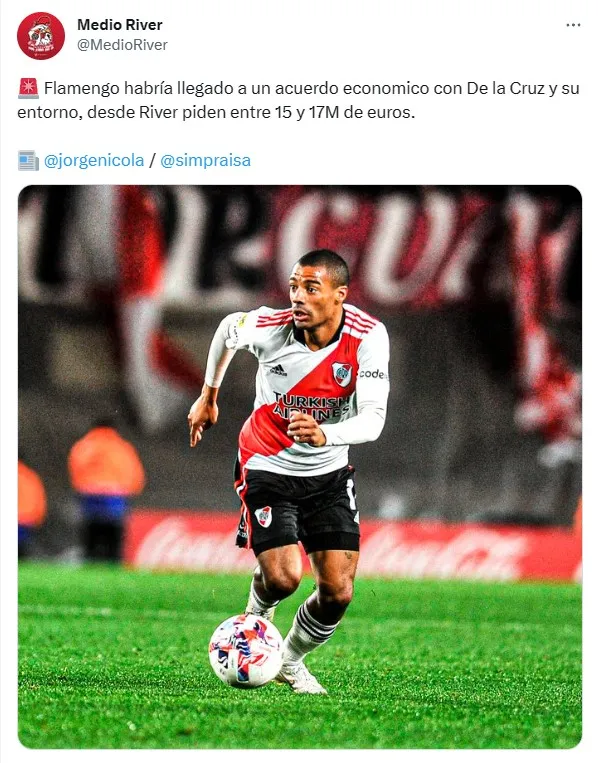Uno de los jugadores que desvive a Jorge Sampaoli es Nicolás De La Cruz, una de las principales figuras de River desde hace varios años. El uruguayo renovó en Núñez hasta 2025, luego de un 2022 donde parecía que el volante se marchaba libre. Es por eso que el Millonario se pondrá firme para poder retenerlo y, en caso de una venta, no le saldrá nada barato al Mengão.
