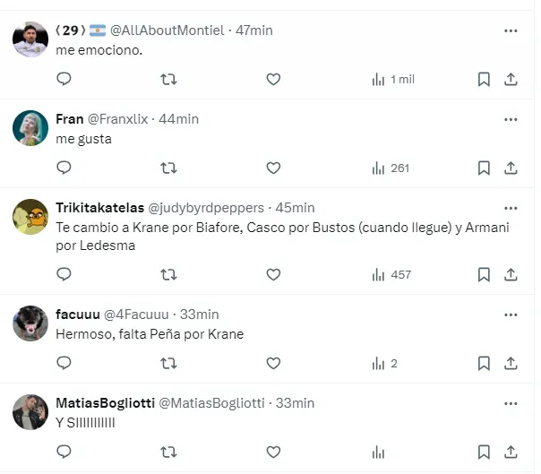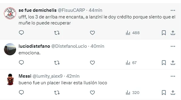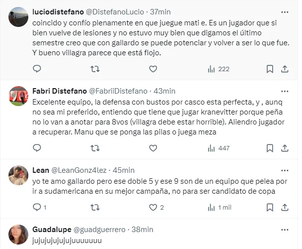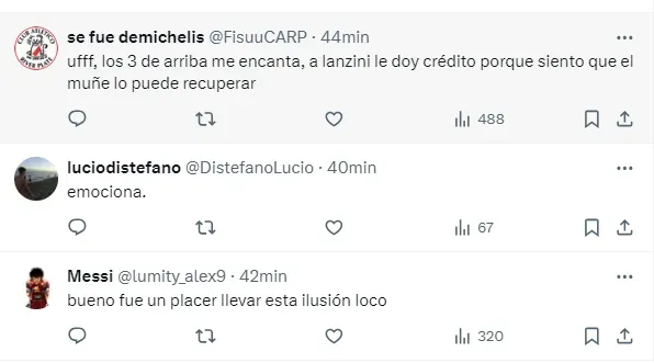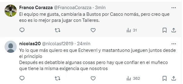 Rápidamente, en las redes sociales los hinchas reaccionaron a este equipo, y mostraron una ilusión muy grande por ver a dos de sus máximas promesas como titulares, en un hecho inédito, debido a que nunca compartieron alineación titular desde que debutaron en primera.