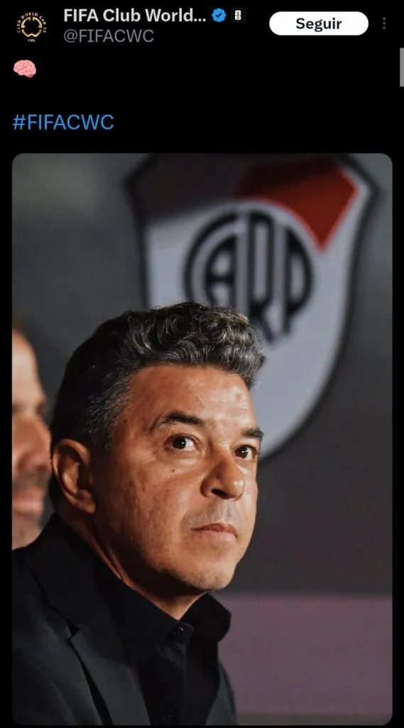 Además de dedicarle un posteo al triunfo del Millonario, la cuenta de FIFA publicó una foto resaltando al entrenador Marcelo Gallardo, con el emoji de un cerebro para destacar el trabajo que hizo desde su llegada al club, logrando ganar los dos cruces mano a mano en esta Copa Libertadores.