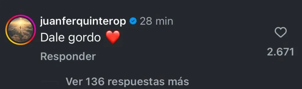 En una de las publicaciones que River compartió en su cuenta oficial de Instagram, el colombiano comentó con entusiasmo la llegada a Núñez de su ex compañero en Racing. “Vamos gordo”, escribió, junto a un emoji de corazón. En minutos, el mensaje se volvió viral: superó los 2.000 “me gusta” y acumuló más de 150 respuestas, la gran mayoría por parte de hinchas millonarios que le rogaron su regreso al club.