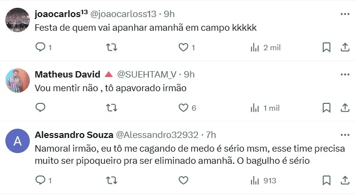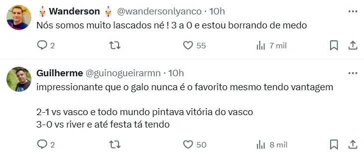 “Tengo miedo hermano”, “es imposible no estar preocupado”, “hay que tenerles respeto“, fueron algunas de las frases de los hinchas de Atlético Mineiro luego de ver cómo la gente de River copó el Monumental. Con la serie 3 a 0, no todos están confiados de avanzar a la final.