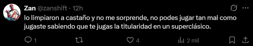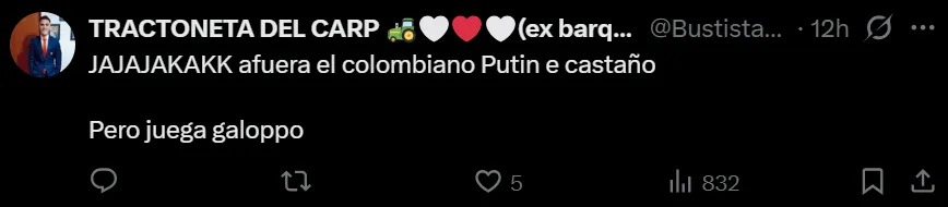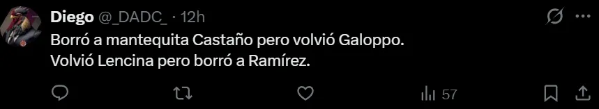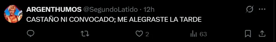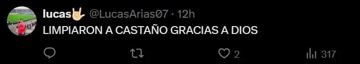 - La ausencia de Castaño generó reacciones críticas y celebraciones entre los hinchas en redes.