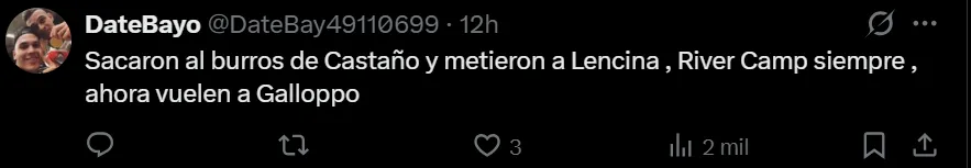 Los hinchas de River, felices por la ausencia de Castaño