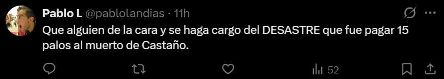 La reacción de los hinchas ante la ausencia de Castaño