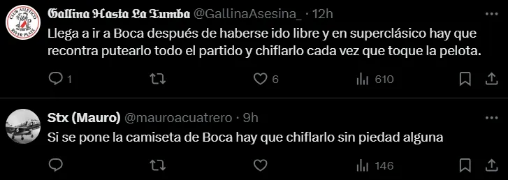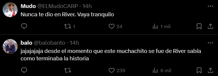 A través de las redes sociales, muchos hinchas de River manifestaron su malestar ante un posible paso de Benjamín Rollheiser al rival de toda la vida. En caso de confirmarse ese traspaso, se prometió silbarlo en el próximo Superclásico en el Monumental e inclusive algunos extremistas llegaron a decir que sería considerado el enemigo número 1 de esta época.