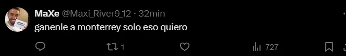 “Gánenle a Demichelis, lo demás no importa”, “Ganen por favor”, “Gánenle a Monterrey, solo eso quiero”, “Si no le ganan a un mexicano tienen que irse todos”, “Si perdemos con Micho tienen que borrar el club”, fueron algunos de los comentarios de los hinchas del Millonario referidos a este cruce con Rayados.