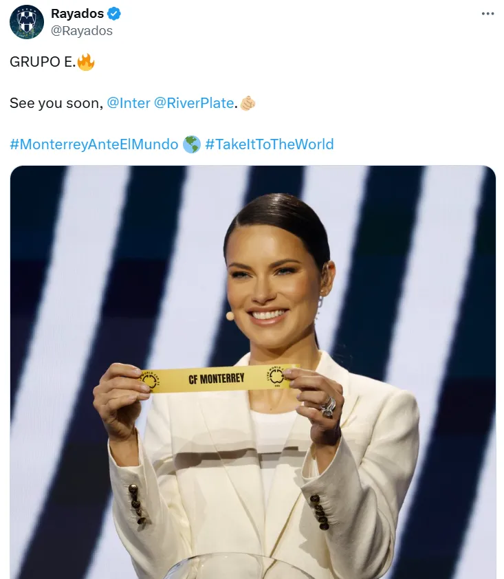 A través de su cuenta de X, Rayados de Monterrey compartió una imagen del papel que indicaba que conformaría el Grupo E y agregó: “Grupo E -con el emoji de un fueguito- Nos vemos pronto, Inter de Milán y River Plate”. Minutos más tarde se sumó Urawa Red Diamonds y completó la zona.