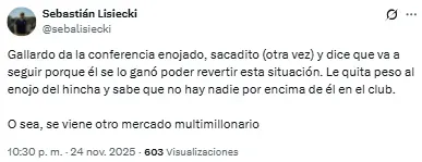 Para colmo, el DT habló en conferencia de prensa tras la caída ante Racing y provocó aún más reacciones de quiénes creen que es un ciclo cumplido. En un extenso intercambio con los periodistas, dejó frases que dieron que hablar entre los hinchas.