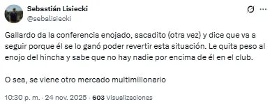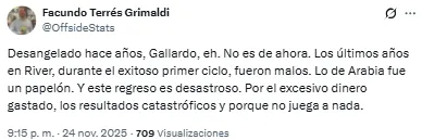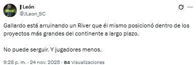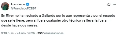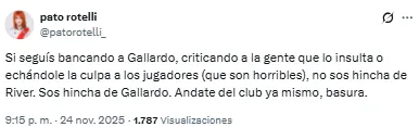 Las críticas de los hinchas de River a Gallardo