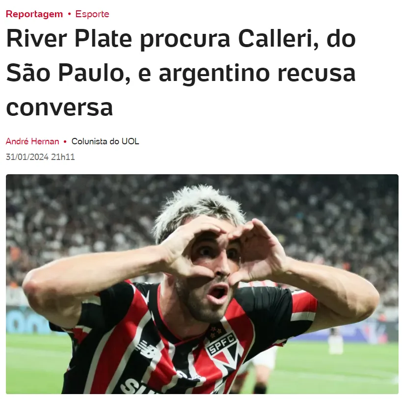 El llamado de River a Jonathan Calleri fue una de las noticias de la semana. El goleador mantuvo una comunicación con gente del Millonario, que intentó tentarlo para que se ponga la banda roja pese a su paso previo por Boca. Si bien ninguna de las partes se expresó públicamente, en Brasil ya conocen la decisión del jugador.