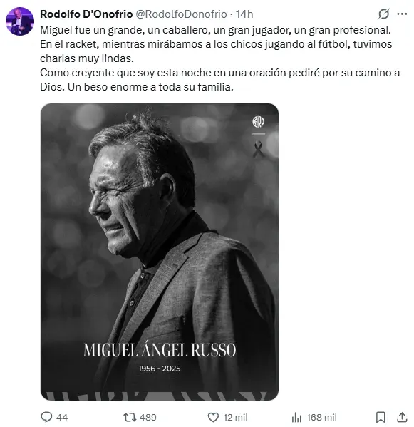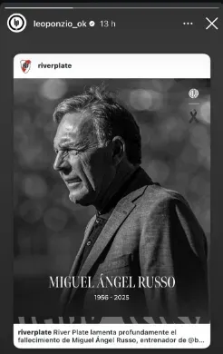 La publicación de River por el fallecimiento de Miguel Ángel Russo