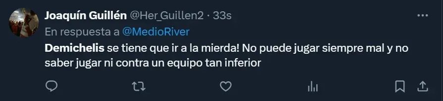 Los cuestionamientos de los hinchas de River hacia Martín Demichelis