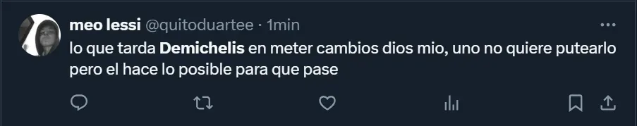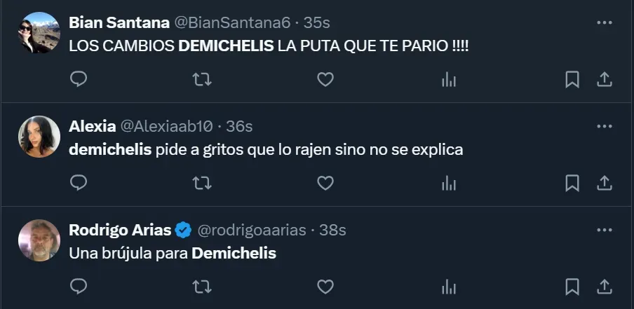 Además de pedir que Demichelis realizara modificaciones, hubo diversos cuestionamientos, entre los que principalmente se destacaba la penosa actuación y que River no lograba superar en todo sentido a Deportivo Táchira. No es la primera vez que esto ocurre, pero desde la Comisión Directiva como así también la Secretaría Técnica bancan rotundamente al director técnico.