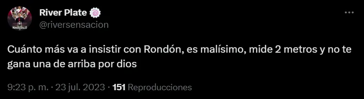 Y, tal como viene sucediendo en los últimos tiempos, el mencionado delantero venezolano fue uno de los más apuntados por los hinchas. De hecho, por intermedio de las redes sociales, los fanáticos del millonario hicieron tendencia a Rondón.