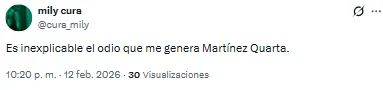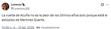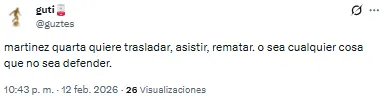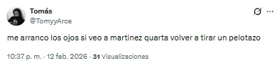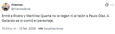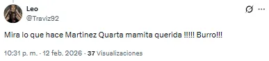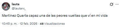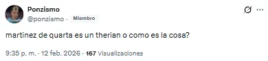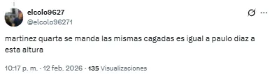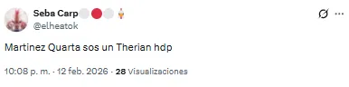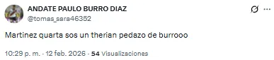 “Che, ¿Martínez Quarta es un therian? Si no no se entiende lo perro”, disparó uno de los seguidores del Millonario con humor ácido. Otro, en cambio, analizó: “La mayor cagada de Maidana en toda su estadía en River fue hacernos creer que el asno de Martinez Quarta era bueno”.