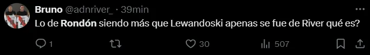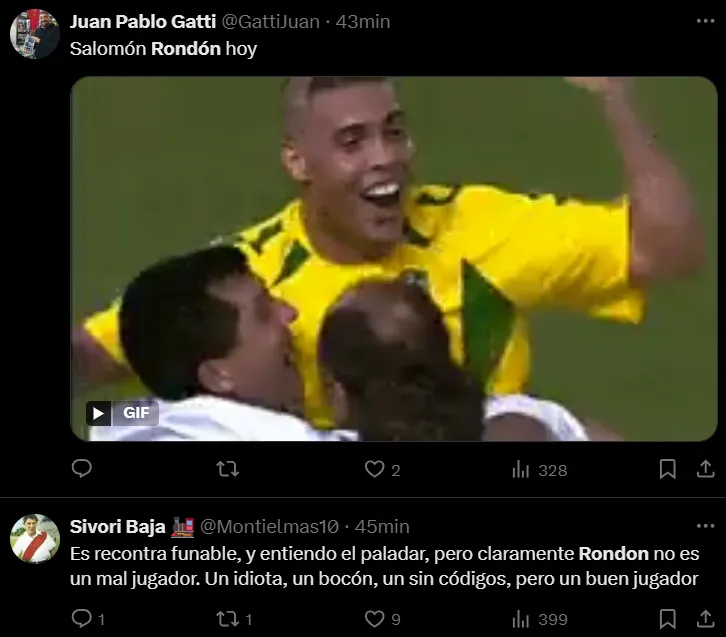 Fernando Batista decidió que Salomón Rondón inicie como titular y tuvo un primer tiempo más que interesante, ya en la segunda mitad el entrenador optó por reemplazarlo y se marchó del campo de juego antes de los quince minutos. En las redes sociales, los hinchas de River ironizaron con su rendimiento, hubo quienes lo elogiaron, estuvieron los que lo criticaron y también mostraron cierto resquemor por su polémica salida.