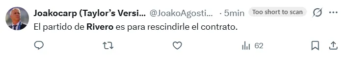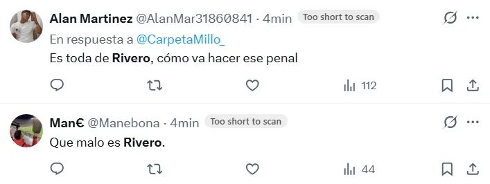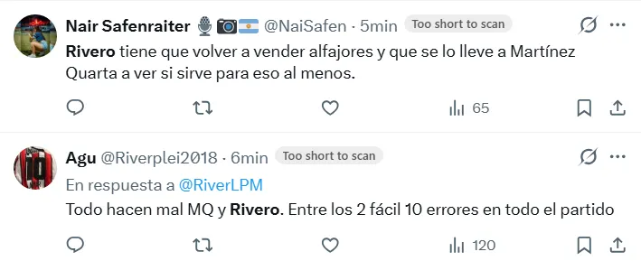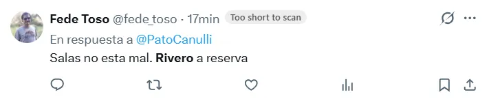 En consecuencia, las reacciones en redes sociales no tardaron en reprobar el rendimiento del futbolista de 22 años. “A la Reserva”, escribió @fede_toso, mientras que otro usuario lo responsabilizó de la derrota. “Su partido es para rescindirle contrato”, posteó.