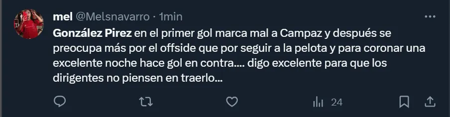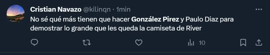 Más allá de los resultados futbolísticos, los fanáticos del Millonario se enojaron muchísimo por lo que fue la actuación de Leandro González Pirez, a quien los dirigentes adquirieron en los últimos días tras ejecutar la opción de compra que Inter Miami había impuesto a la hora de aceptar la operación por un préstamo.