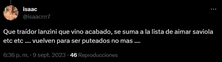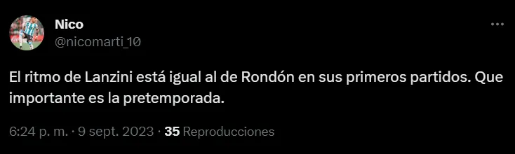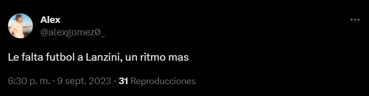 Así las cosas, por intermedio de las redes sociales, muchos hinchas del equipo de Demichelis se vieron sorprendidos por el bajo nivel de Manuel Lanzini en los primeros 45 minutos. Cabe señalar que el volante ofensivo llegó libre tras irse de West Ham United.