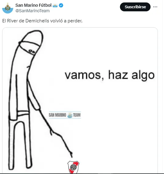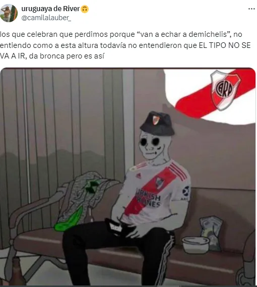 En las redes sociales rápidamente tantos los hinchas del Millonario como el público futbolero en general fueron comentando el desarrollo de este encuentro, y allí compartieron diversos memes sobre lo que fue una pobre presentación del elenco comandado por Martín Demichelis.
