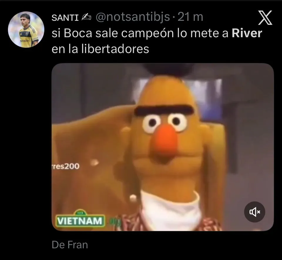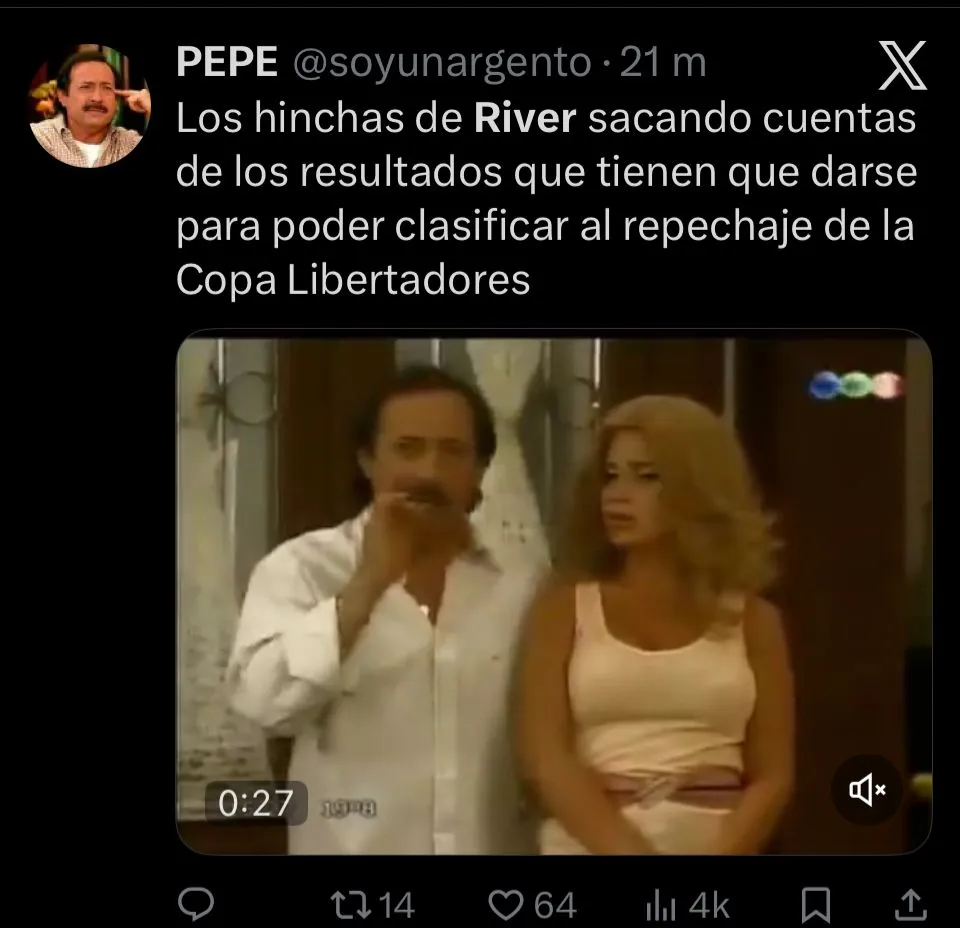 Además, múltiples acciones aisladas y la tensión acumulada también dieron lugar a una catarata de humor y sarcasmo. Lo cierto es que los hinchas atravesaron el partido con los nervios de punta, pero en redes sociales varios eligieron convertir esa tensión en sonrisas.