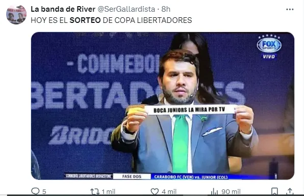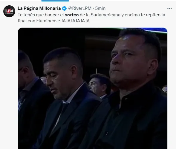 Al ser un evento masivo, en las redes sociales los hinchas del elenco de Núñez fueron reaccionando en vivo, y allí publicaron diversos memes referidos a los a la previa de este sorteo, así como también cargando a Boca, que jugará la Copa Sudamericana.