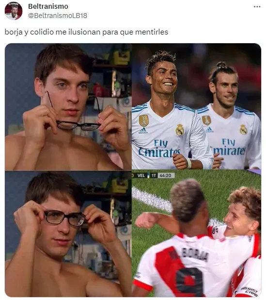La actuación de los de Micho fue sensación en redes sociales. Los hinchas de River, extasiados con lo que estaban viendo, llenaron las plataformas con memes sobre el nivel de sus jugadores y Colidio fue uno de los más mencionados.