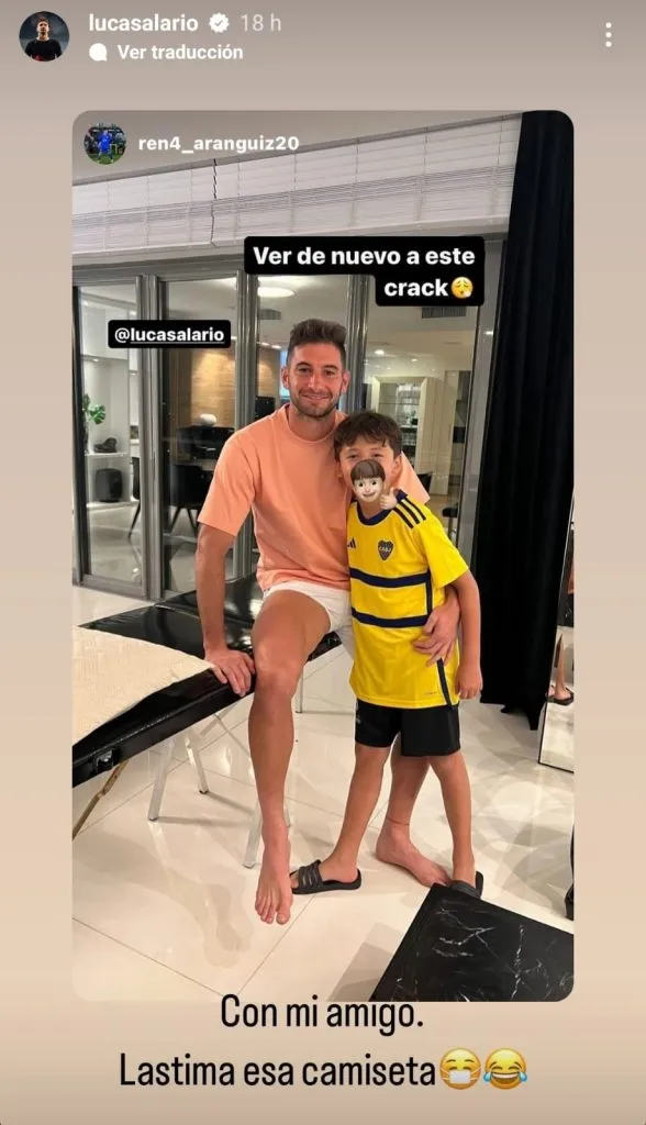 Por medio de su cuenta de Instagram, el delantero santafesino compartió una imagen junto a Renato Aránguiz, hijo de Charles Aránguiz. Con el mediocampista chileno comparte el plantel de SC Internacional, y si bien el purrete colocó una frase motivadora dado a que ambos futbolistas compartieron el plantel de Bayer Leverkusen, Alario apuntó contra Boca.