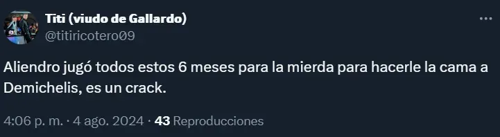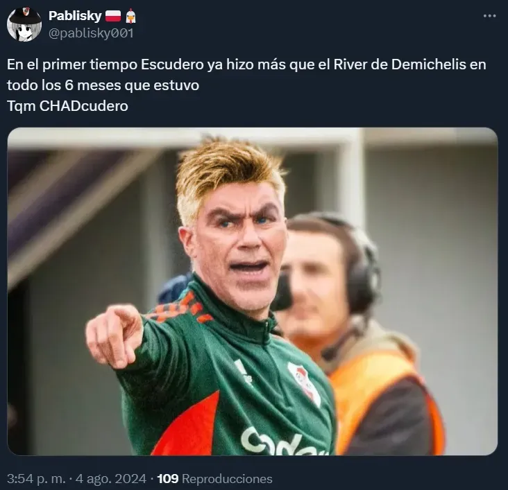 De hecho, como consecuencia de esos pasajes de buen fútbol de River frente a Unión, los hinchas Millonarios hicieron tendencia al propio Demichelis pese a que ya no es el director técnico de los de Núñez. Sí, algo completamente inesperado en este momento.