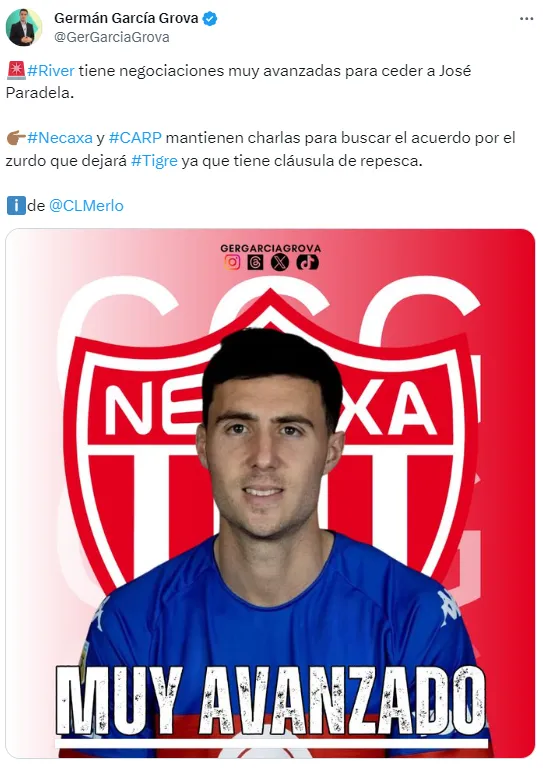 Según la información del periodista, River está en negociaciones avanzadas con Necaxa, de la Liga MX, para prestarlo. De concretarse la operación, sería la primera experiencia de Paradela en el exterior. Cabe recordar que el jugador de 25 años tiene contrato con el equipo argentino hasta diciembre de 2025.