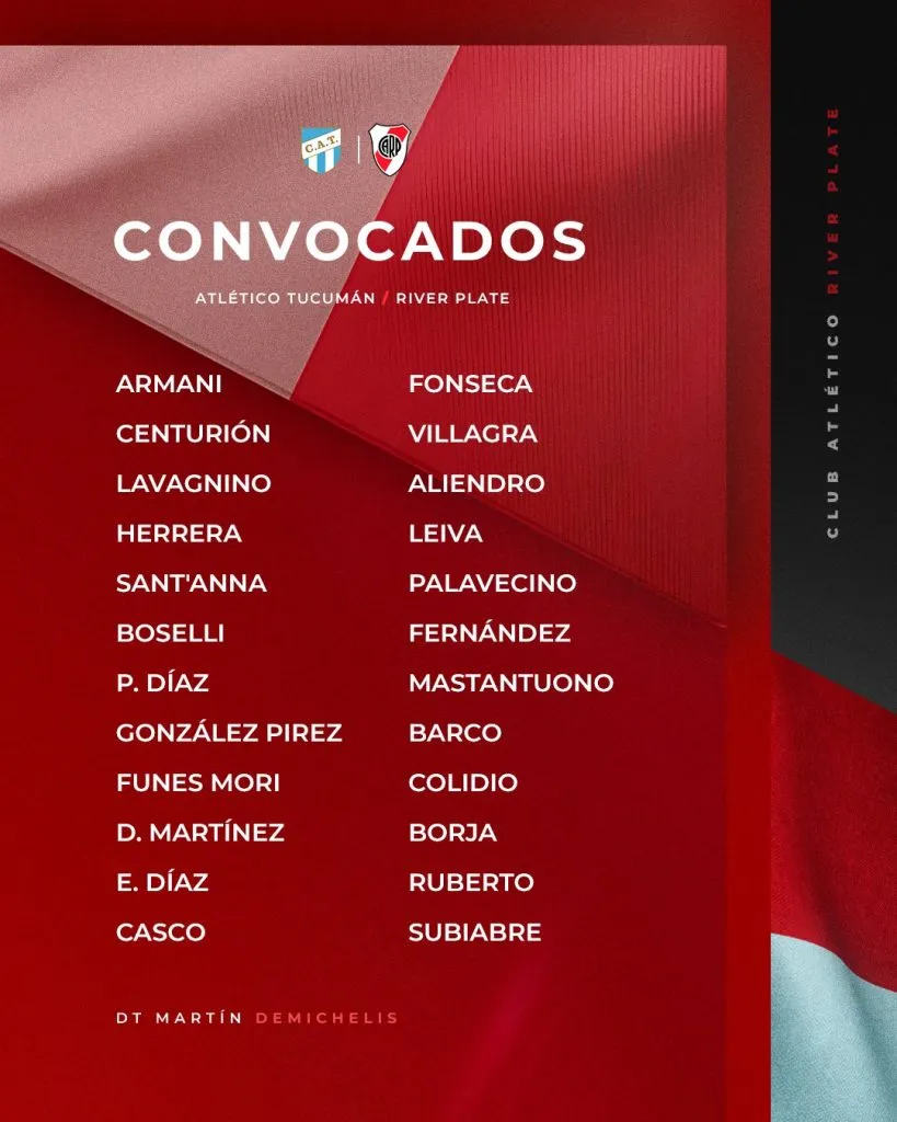 Los convocados de River para visitar a Atlético Tucumán