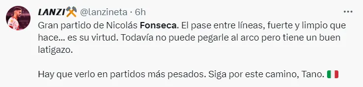 ¿Cómo fue el partido de Nicolás Fonseca ante Barracas?