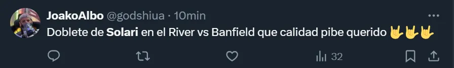 Tras lo que fue el triunfo de River ante Banfield, donde Pablo Solari convirtió por duplicado, se refirió a lo que fue el recibimiento y el cariño que tuvieron en la previa al partido contra Atlético Mineiro, además de la banca que recibieron tras la eliminación en la Copa Libertadores.