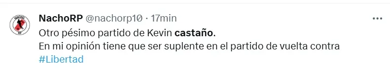Lo cierto es que los hinchas apuntaron directamente contra Kevin Castaño, ya que no estuvo a la altura de lo pretendido en esta titularidad que lo tuvo como principal mediocampista central. Aunque fue el único que repitió respecto al equipo que enfrentó al conjunto guaraní hace algunos días, el colombiano quedó en deuda con Marcelo Gallardo y los simpatizantes no lo perdonaron.