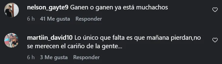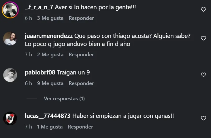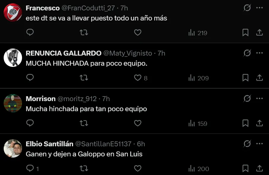 Es importante diferenciar el clima de las rede sociales -con el anonimato como bandera en muchos casos- con lo que se vive en la calle o en el Estadio Monumental cuando River juega como local. En esta oportunidad, en las publicaciones que compartió el club -en X e Instagram- la mayoría de los comentarios fueron negativos.