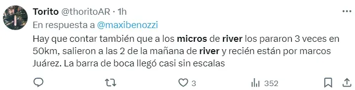 El objetivo de los micros era arribar a Córdoba Capital a eso de las 12 del mediodía, sabiendo que tendrían que pasar por algunas requisas, pero lo que nadie imaginó es que serían tantas e injustificadas. Cuando se cambia de jurisdicción, es habitual que un grupo de policías controle quiénes ingresan y egresan de la misma, pero varios de los hinchas que están en esos micros le contaron a Bolavip que hubo más de las habituales y que encima fueron bastante más largas de lo habitual.
