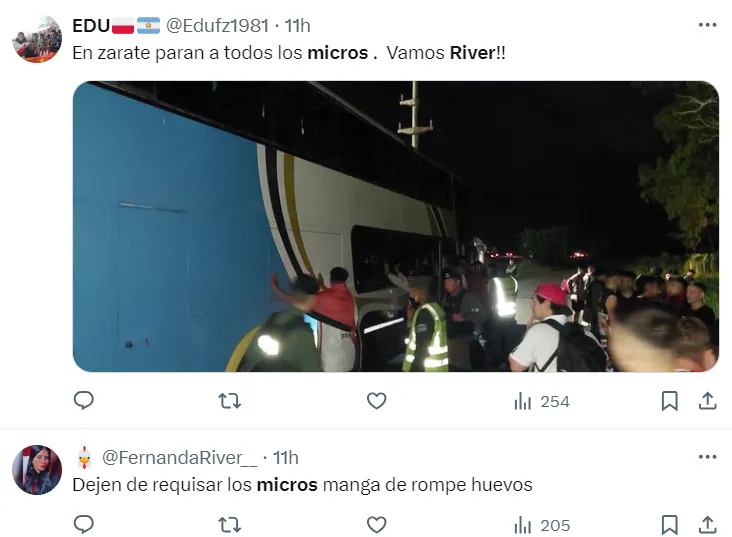 Ante cada requisa, hubo indignación por parte de los hinchas que estaban en los micros, ya que consideraban malo el trato policial en líneas generales. Pero, lo que más afectó fue la demora, ya que todo estaba dado para llegar con tiempo necesario al Kempes de cara al Superclásico, algo que también agradecería el operativo policial destinado al evento.
