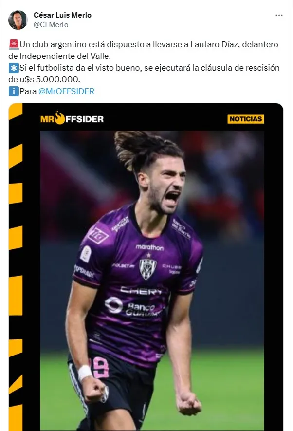 ¿De cuánto es la cláusula de Lautaro Díaz, jugador de Independiente del Valle?