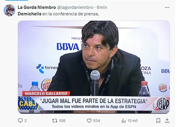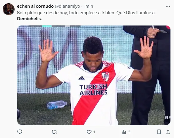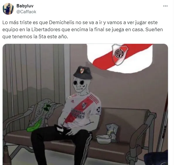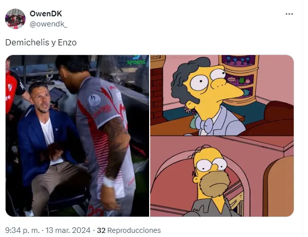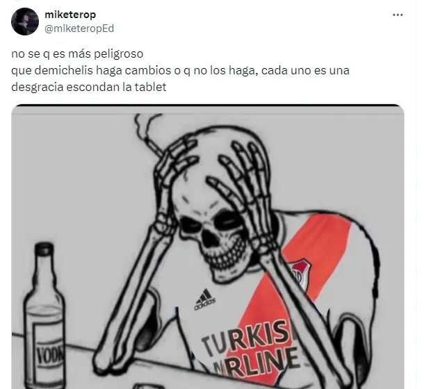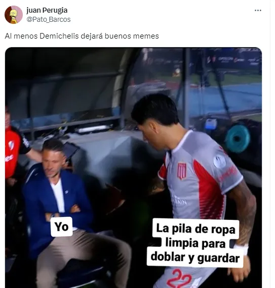 Además, dentro de estos memes, los fanáticos del elenco de Núñez también apuntaron contra su entrenador por otro motivo, ya que no se muestran conformes con los cambios que realiza para mejorar a su equipo en cada partido, pero luego se retractaron, ya que con las variantes de Demichelis lograron consagrarse campeones.