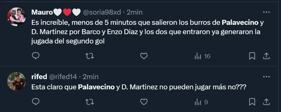 Si bien ahora deberán esperar por el ganador de Temperley y Sarmiento de Junín, en el Millonario hubo algunas críticas, en parte desmedidas, para con uno de los titulares que colocó Demichelis, dado a que según los fanáticos que se expresaron por medio de las redes sociales, su actuación no fue la esperada.