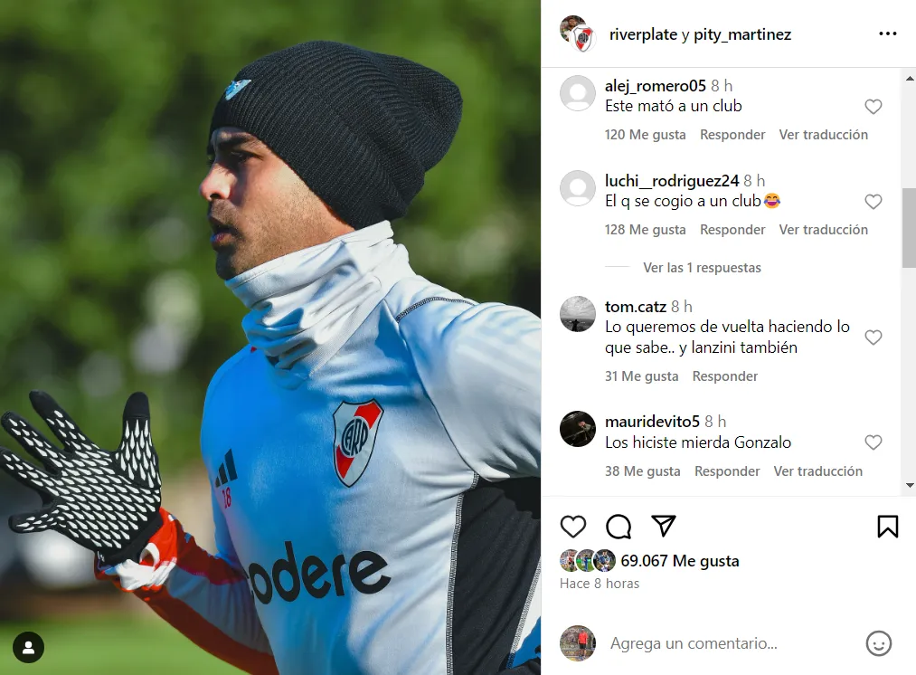 River compartió una foto del Pity Martínez en sus redes sociales oficiales y la publicación se llenó de comentarios positivos para con el futbolista que se está recuperando de una dura lesión. Martínez regresó al Millonario a mediados de 2023 mientras se recuperaba de una rotura de ligamentos. Luego de jugar un puñado de partidos, el Pity realizaba la pretemporada, pero nuevamente sufrió esa misma lesión y desde enero se está recuperando. Se estima que volverá entre agosto y septiembre.