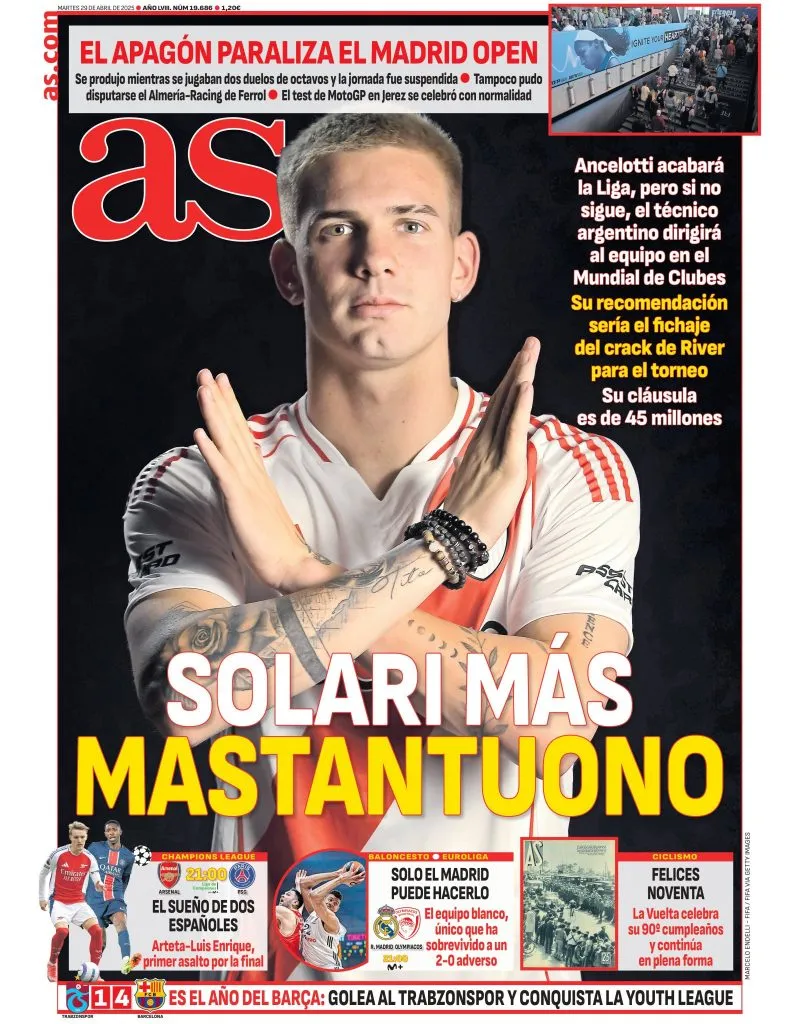 Mientras Carlo Ancelotti se encuentra en la cuerda floja dentro del banco de suplentes de Real Madrid, Santiago Solari suena como posible reemplazante, al menos de forma interina. En ese contexto, según indicó el medio de comunicación español ‘As’, el Indiecito habría recomendado el fichaje de Franco Mastantuono.