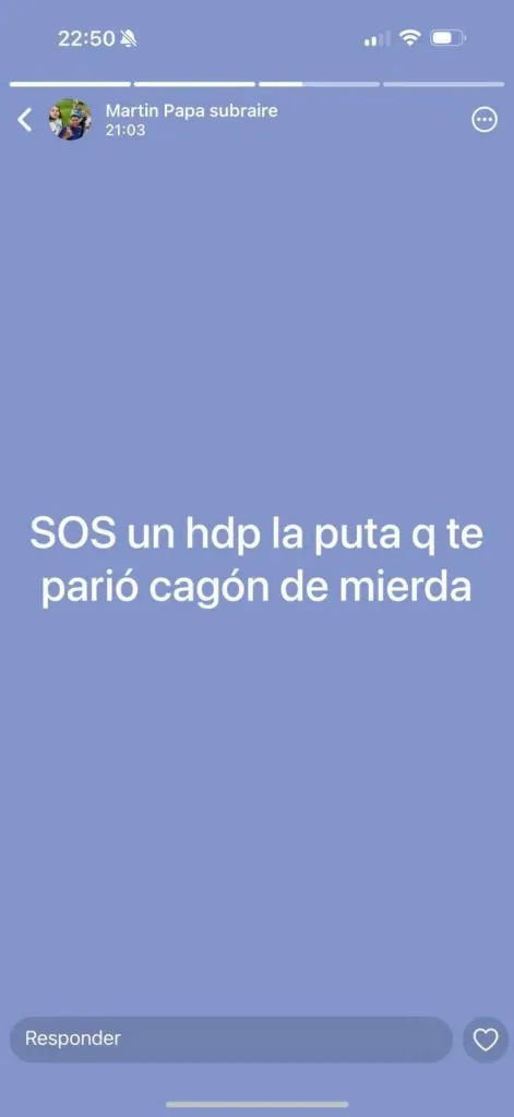 River goleó 4 a 0 a Instituto en Córdoba y Marcelo Gallardo no le dio minutos a Ian Subiabre, que venía de ser titular ante Platense en la primera jornada. Una vez que liquidó los cambios, Martín Subiabre -padre de Ian- compartió un polémico estado en su WhatsApp y todo indica que el destinatario sería el entrenador del Millonario: “SOS un hdp la puta que te parió cagón de mierda”, escribió de manera textual.