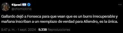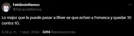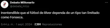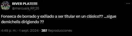 En redes sociales, el partido de Fonseca no pasó desapercibido y su apellido fue una de las tendencias de la tarde. “Lleva 9 meses en el club y no sabemos si es zurdo o diestro“, disparó uno de los usuarios.