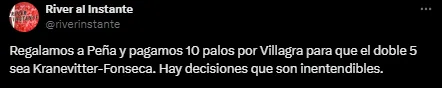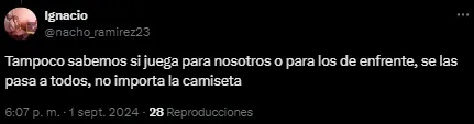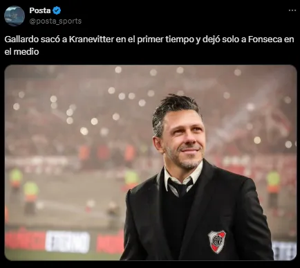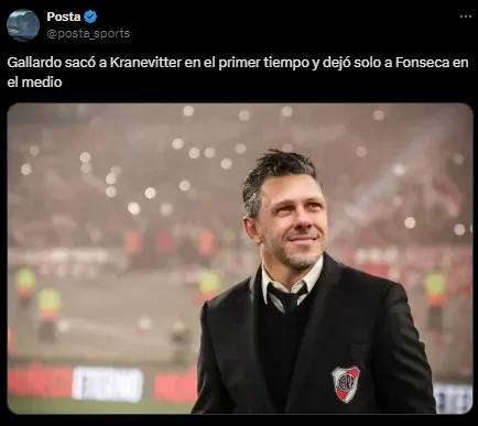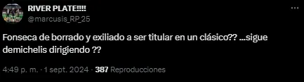 Otro sugirió: “De borrado y exiliado a ser titular en un clásico. ¿Sigue Demichelis dirigiendo?“. “Tampoco sabemos si juega para nosotros o para los de enfrente, se las pasa a todos, no importa la camiseta“, lanzó un tercero.