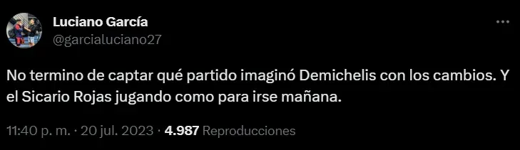 En medio de ese panorama, varios fueron los puntos flojos del equipo de Demichelis. Pero, por intermedio de las redes sociales, los hinchas del equipo Millonario se enfocaron en uno de los integrantes de la defensa, pidiendo incluso que se vaya: Robert Rojas.