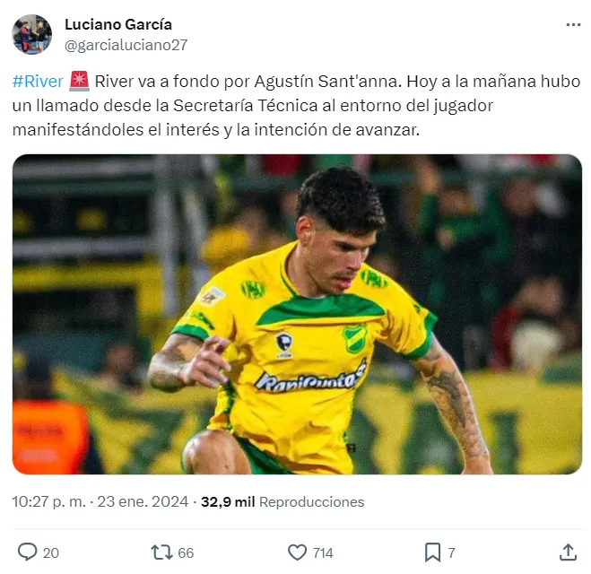 Después de dos amistosos con lesiones de por medio, River terminó tomando la decisión de salir a buscar un lateral derecho al mercado de pases. La Secretaría Técnica ya levantó el teléfono y se comunicó con Agustín Sant’Anna, uno de los más destacados del fútbol argentino en la posición.